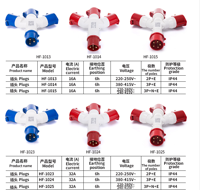 HF1015 5P16A三通多功能插座 HF1025 5孔32A一分三多出头插头插座