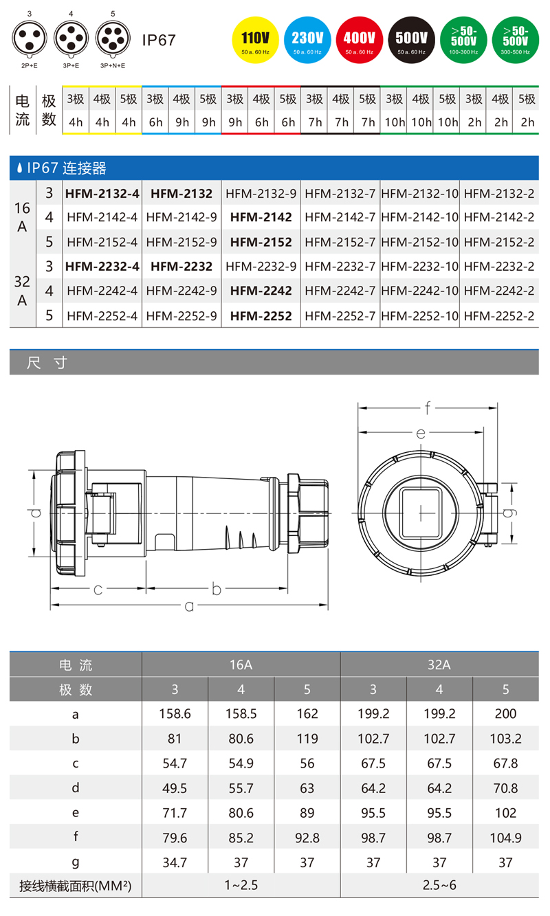 • 型号:   3孔16A连接器HFM2132-4/3孔32A连接器HFM2232-4