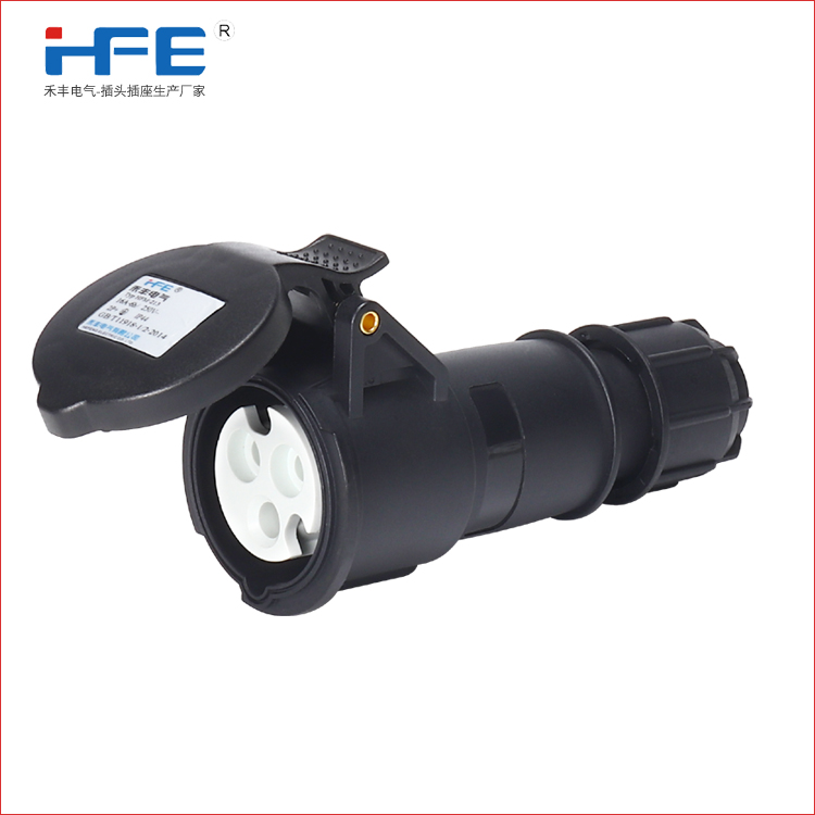 HFE舞台灯光黑色插头HFC213H 3孔16A公母快速对接插头 IP44全黑插头