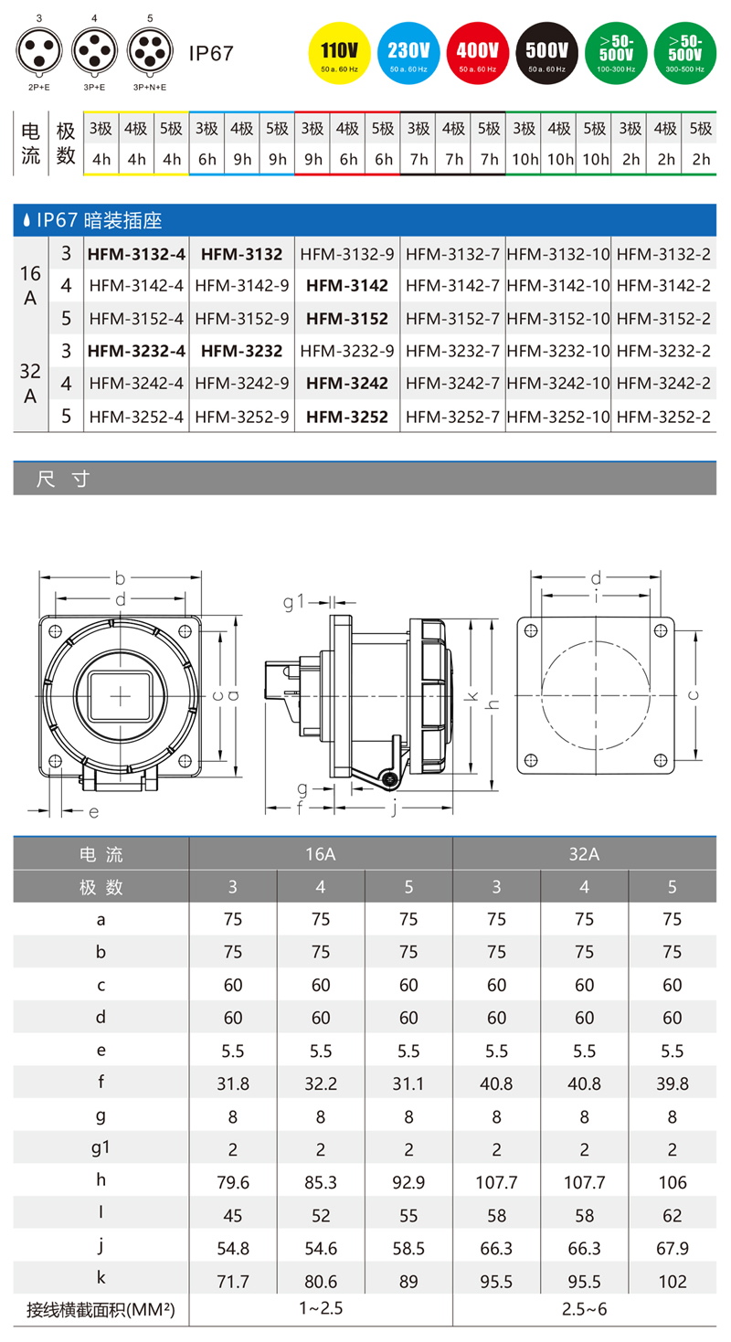 • 型号:   4孔16A直座HFM3142/4孔32A直座HFM3242