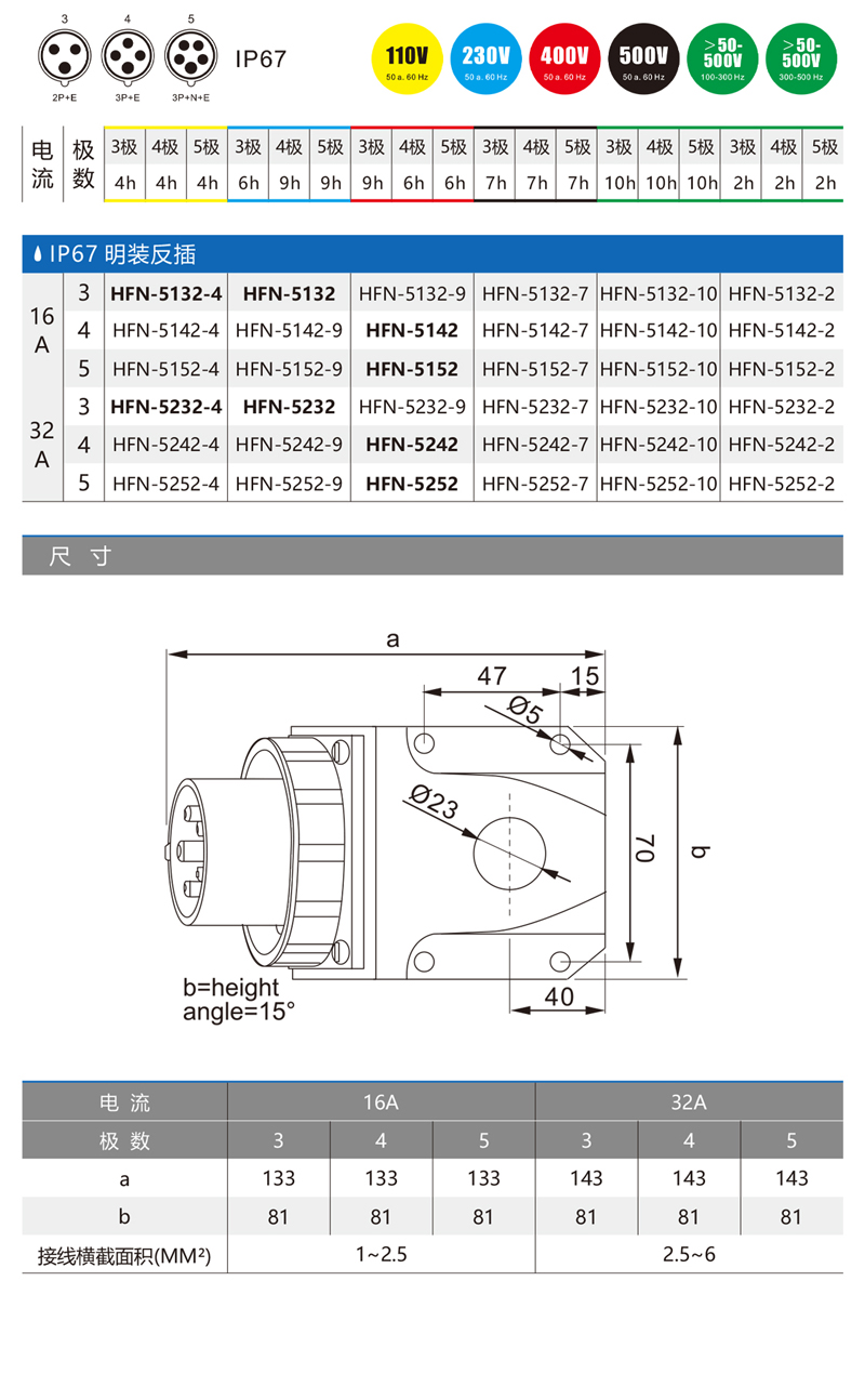 • 型号:   3芯16A明头HFN5132/3芯32A明头HFN5232