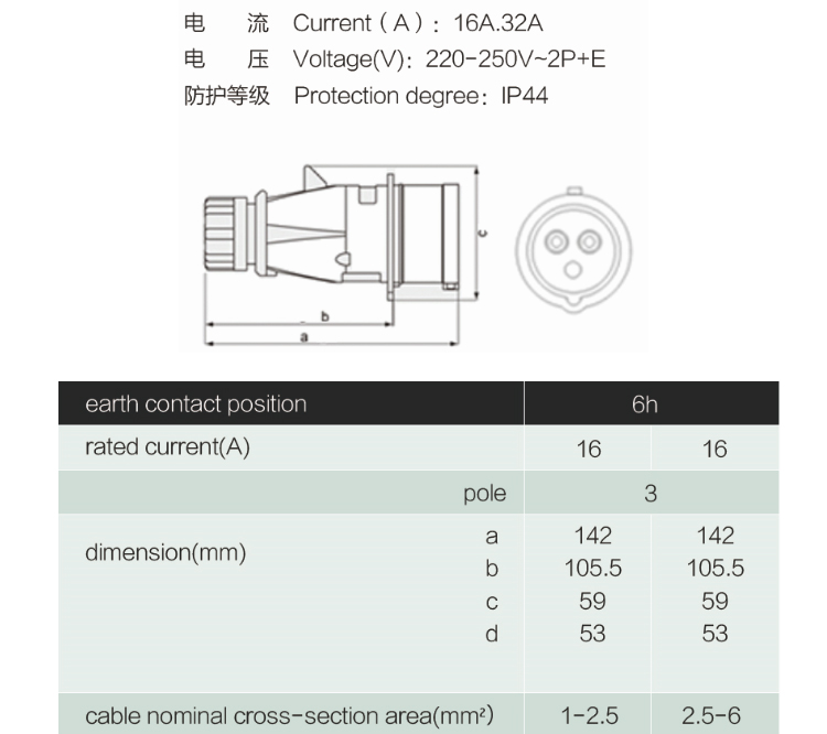 HFM013舞台灯光一体式工业防水插头3孔16A 220V IP44