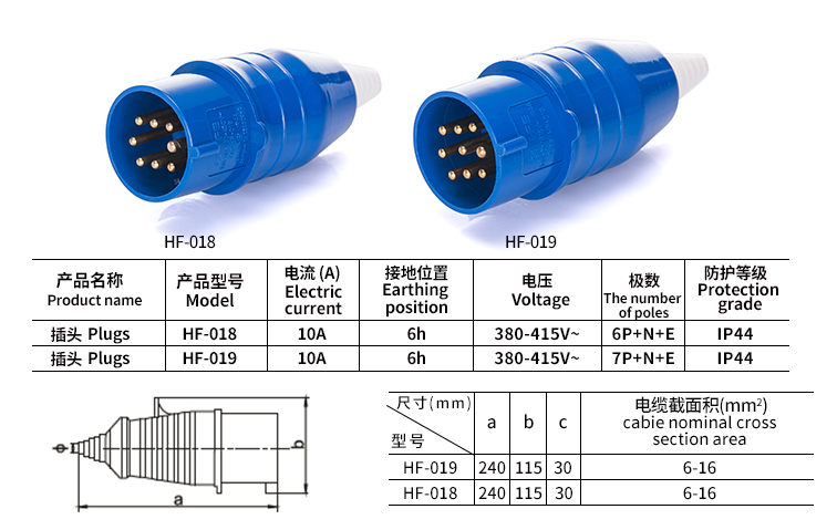 HFE吊篮专用工业航空插头9芯10A/7P+N+E/IP44/6H/380V