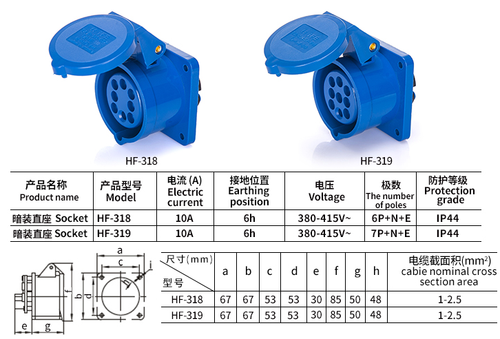 HFE吊篮专用工业暗装插座9芯10A/7P+N+E/IP44/6H/380V