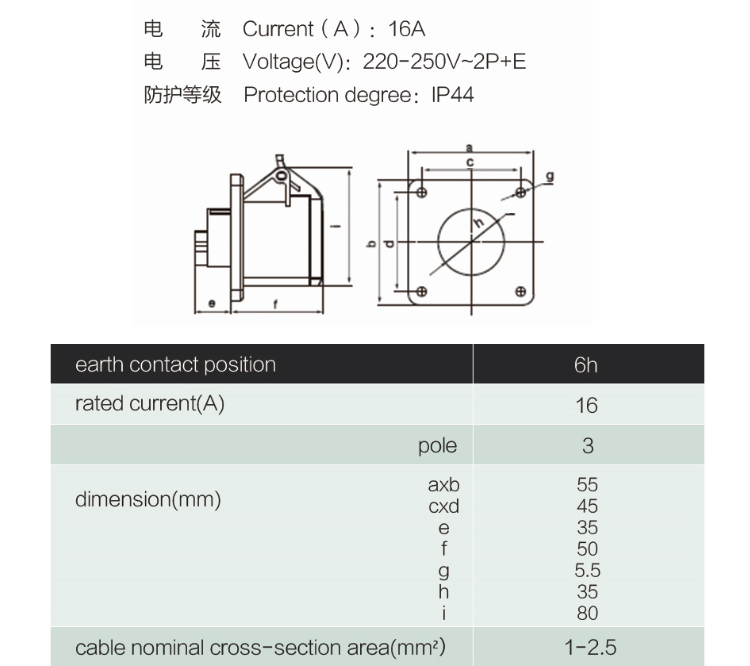 HFM313舞台电源箱面板插座3P16A 220V IP44黑色